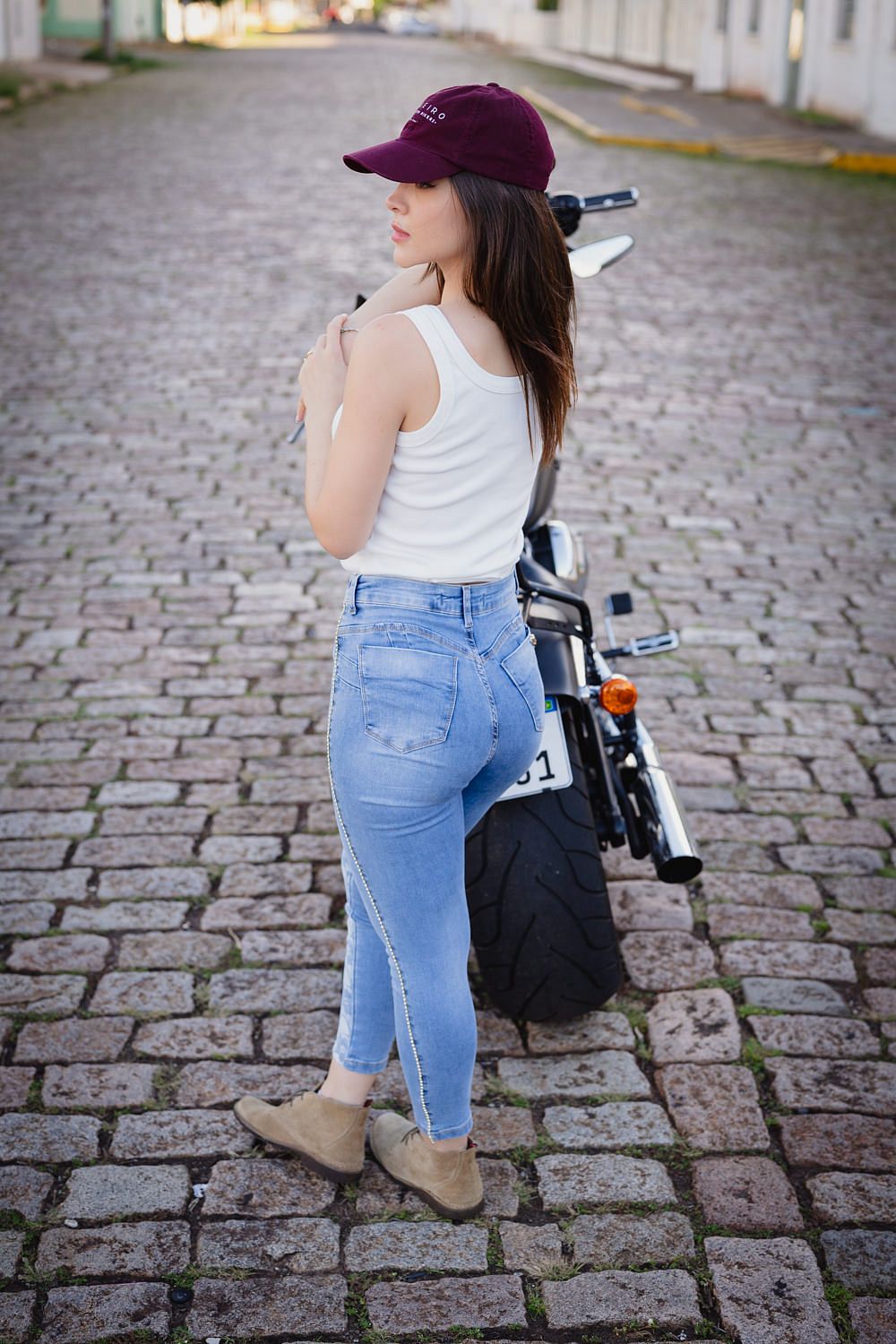 Perfeita para um look do dia-a-dia com uma camiseta básica e bota ou, para um visual noturno, com uma blusa mais sofisticada e salto.