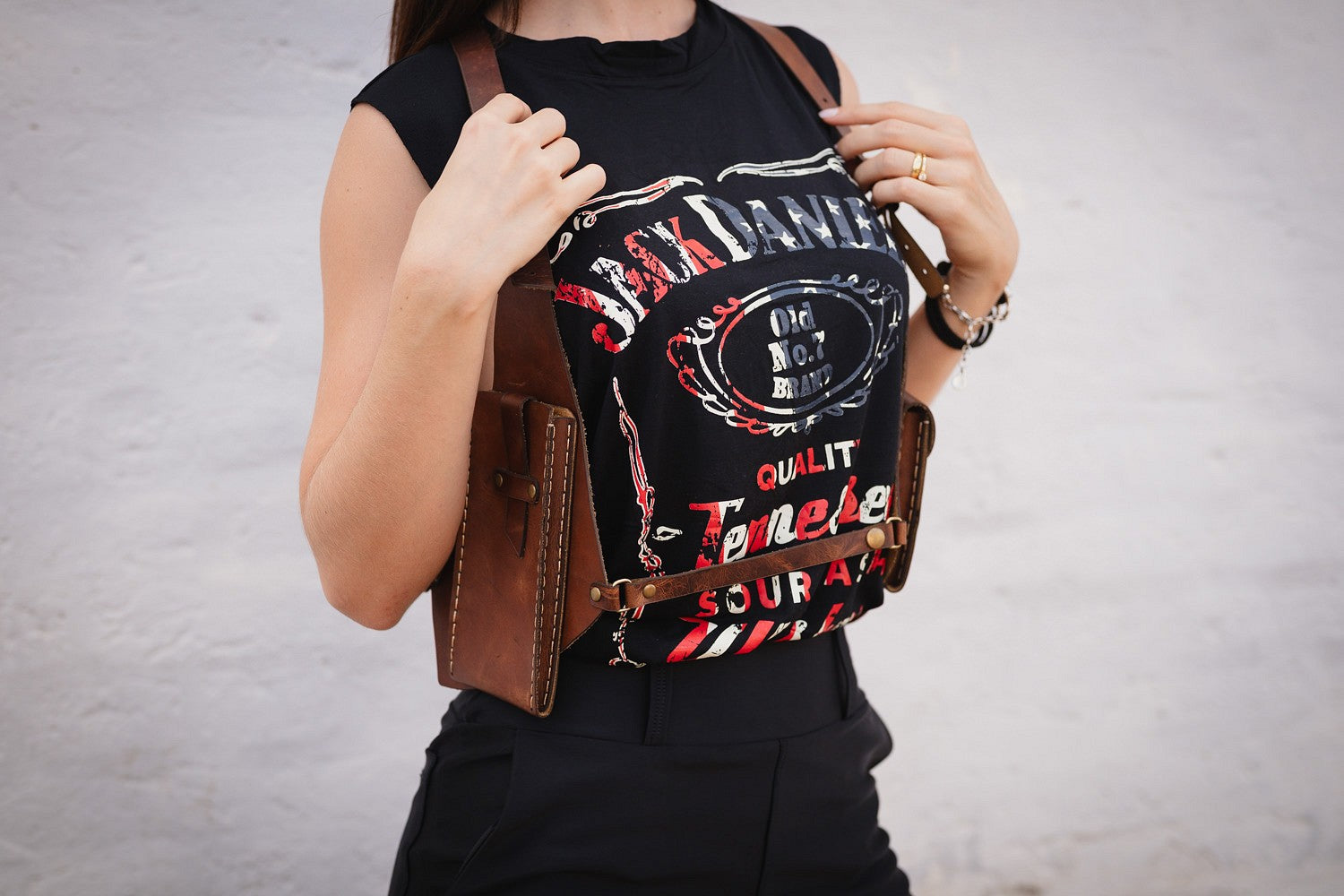 O Coldre unissex de couro legítimo e metais de primeira linha, tem fecho frontal removível e bolsos multiuso. Ideal para dias em que a bolsa não é uma boa opção.