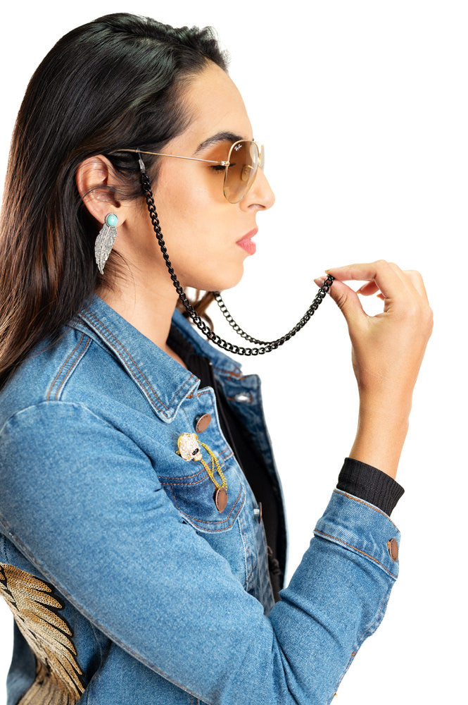 Acessório não menos importante, essa corrente discreta além da segurança no uso dos seus óculos, é uma detalhe a mais no look.