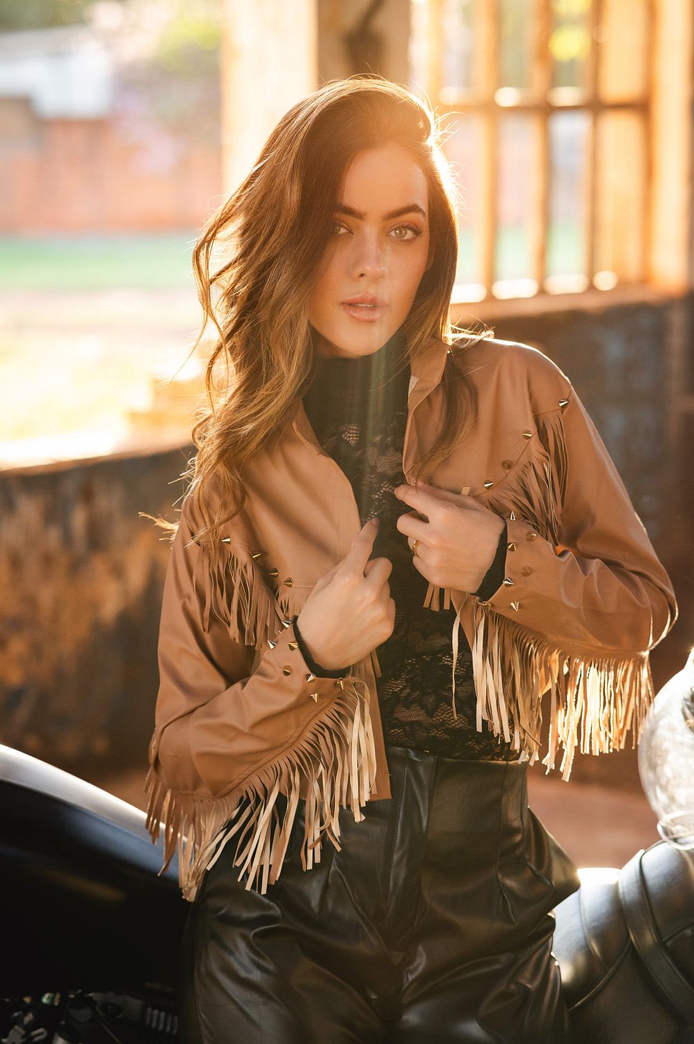 Modelo exclusivo que trará mais personalidade para aquelas que são adeptas das franjas que estão em alta na Moda Moto Boho, no cenário mundial!