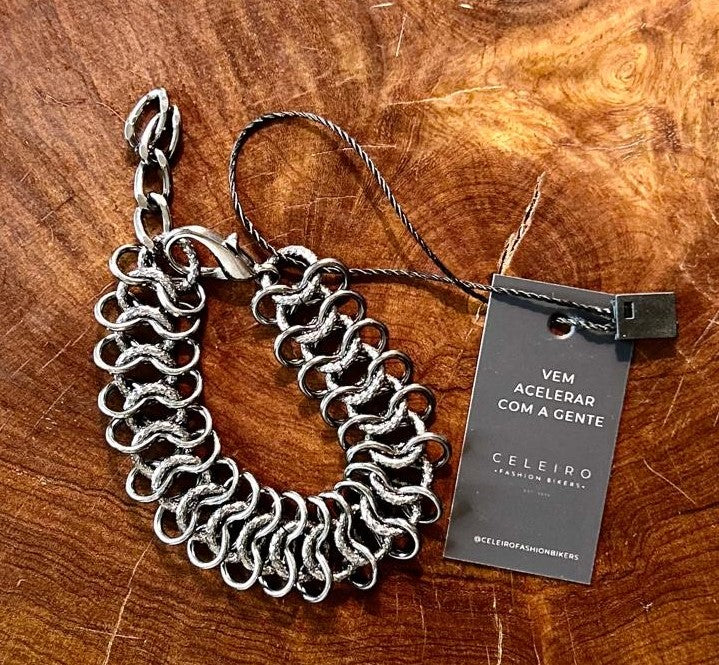 Delicada mas arrojada, essa pulseira em aço pode ser usada como item único ou em composição com outros estilos.